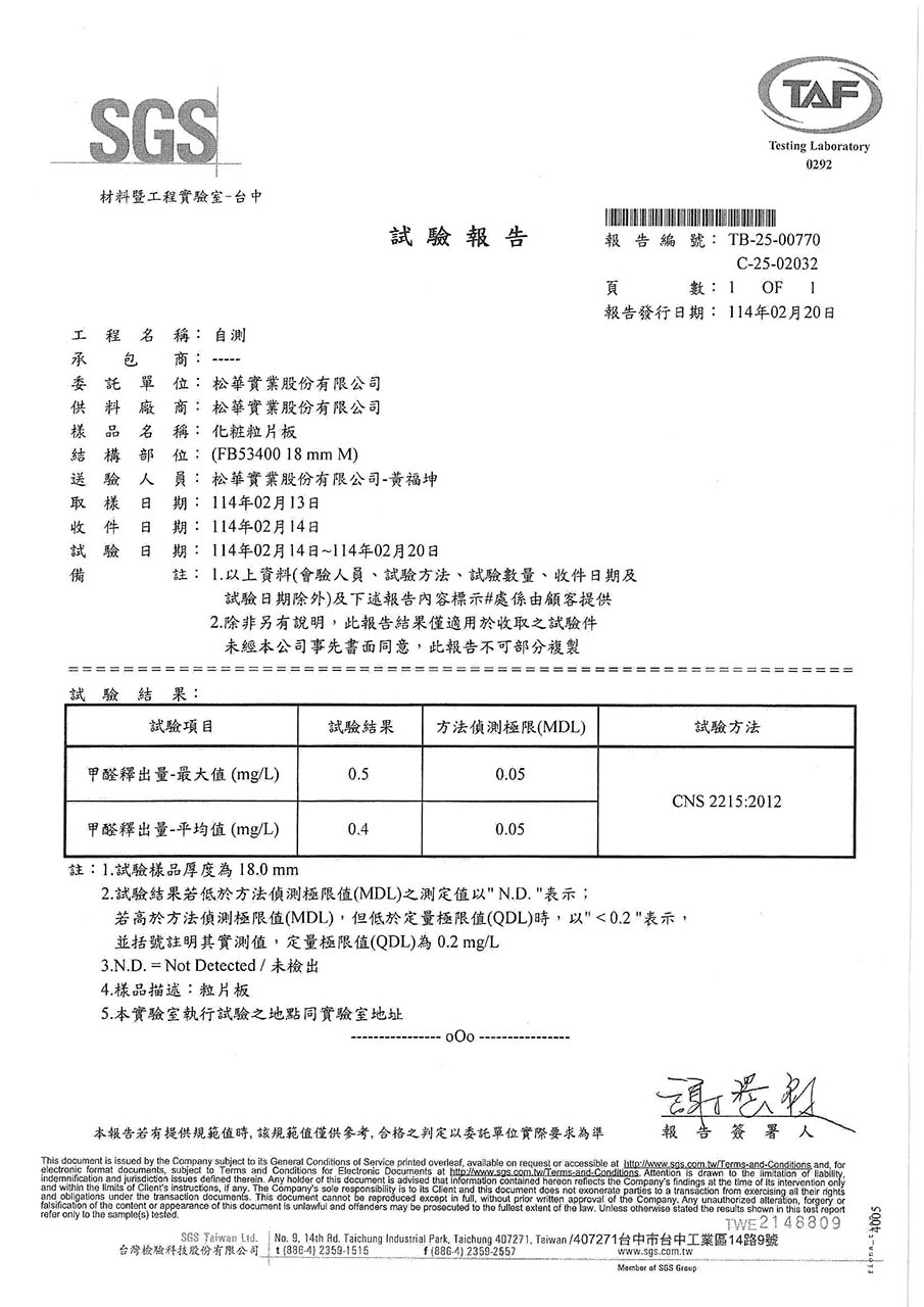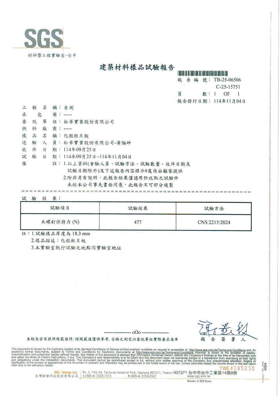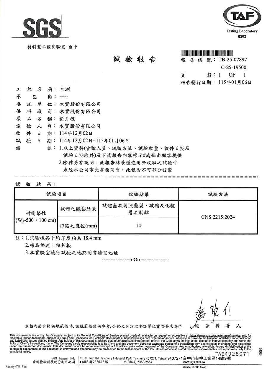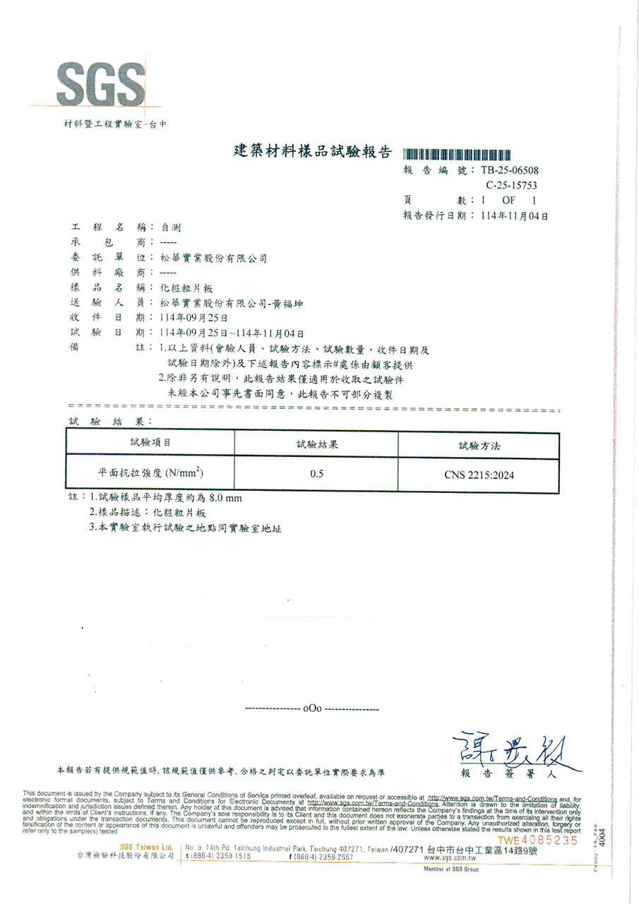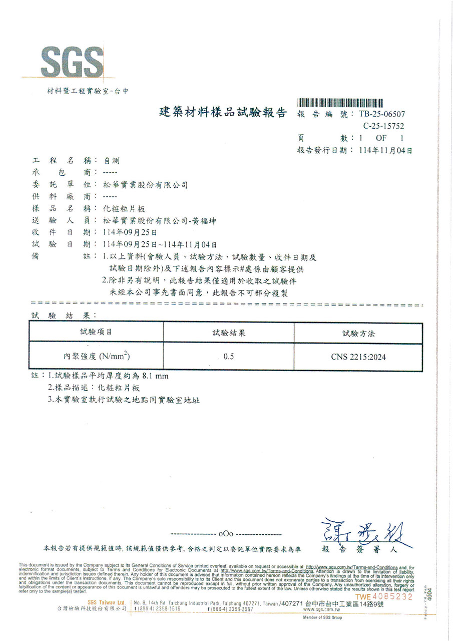 因應台灣海島型潮濕氣候,居家櫥櫃所使用的板材必須符合防潮與低甲醛釋放量的高標準。系統櫃所使用的塑合板材在歐盟檢測標準EN312項目中EN317防潮力測試及EN321耐濕測試所規範的限值(如下表),歐盟標準EN312以V313條件下濕循環測試方法:在24小時的浸水循環測試中,其厚度膨脹率必須低於標準值。