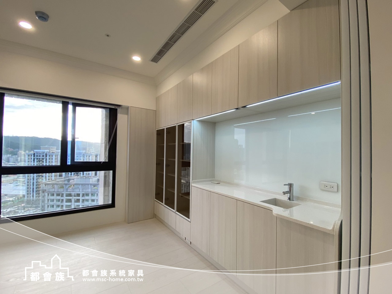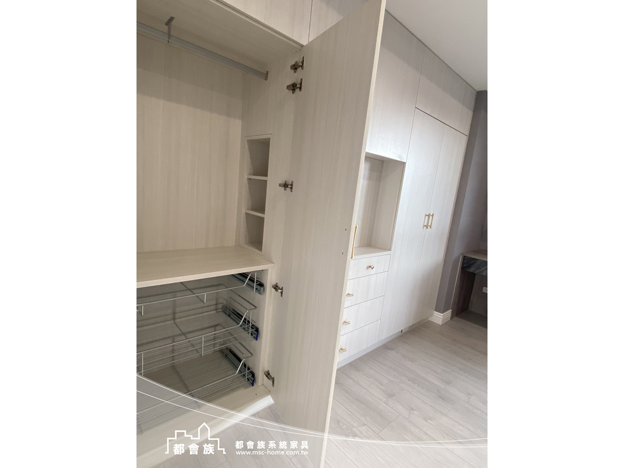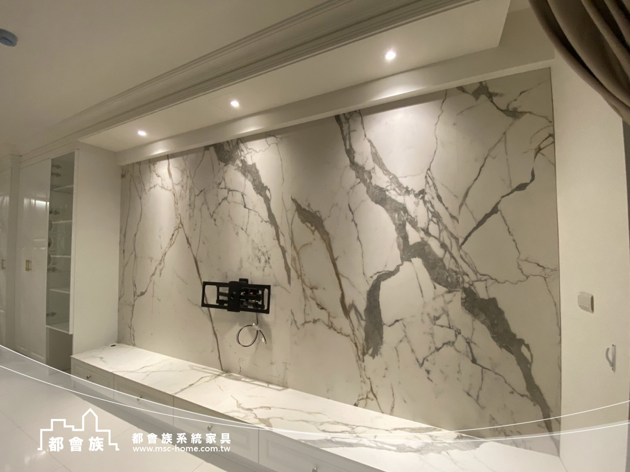 此案是與橙澤設計合作, 整體空間呈現白色美式浪漫奢華宅, 以大量的白色為基底, 並使用鄉村風門片及搭配金屬把手, 製造出輕奢華的氛圍, 並與設計師所使用的線板、石材、鏡面等材質去做搭配, 創造出明亮開闊的格局, 每間臥室及公共空間也都是融入屋主及小孩的想法去做設計, 潮流的現代經典元素, 讓鄉村風格不僅是單純的休閒而已, 而是能讓家同時具備溫馨、收納功能強大與時尚的感覺。