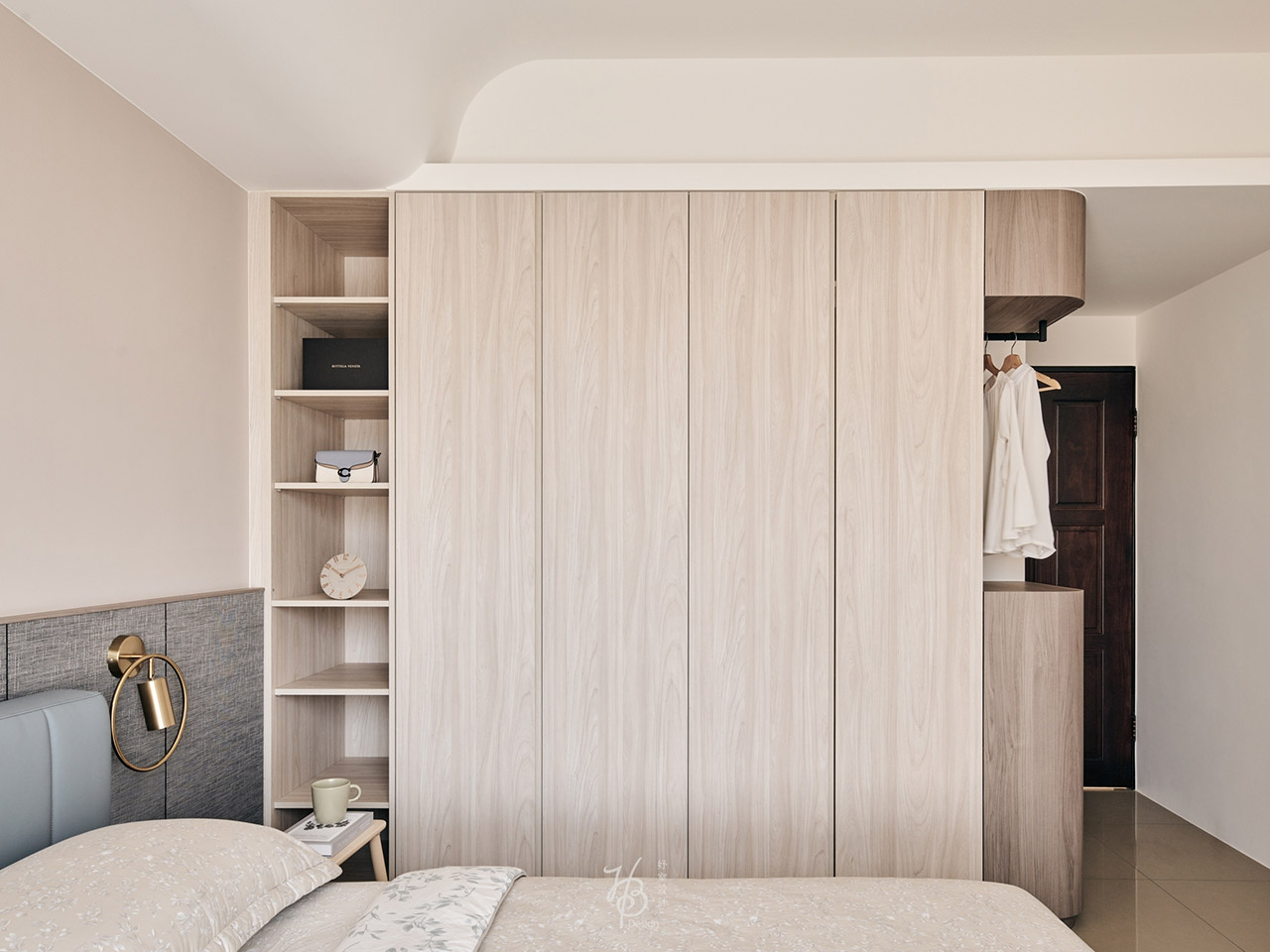 主臥室衣櫃搭配右側木工扇形櫃多了一些圓潤不失違合,