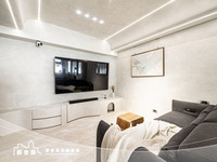 此件位於大直國宅, 進門後玄關使用天花光暈的方式, 加上特殊漆的星光小閃爍打造空間, 整落的鞋櫃及圓弧櫃的方式做收邊, 通透的客廳區牆面則與櫃體設計成, 相近性質及陽光房使男主人回家後有小放鬆的空間, 而2位小朋友的書房則與2位小貓的家為一體, 隱藏式的開門方式使臥室為隱密空間, 因空間限制關係小孩房則使用上鋪雲朵方式打造公主房, 主臥則使用奶茶色的方式打造舒適的空間, 讓一家人回家後有放鬆氛圍溫馨的家。