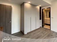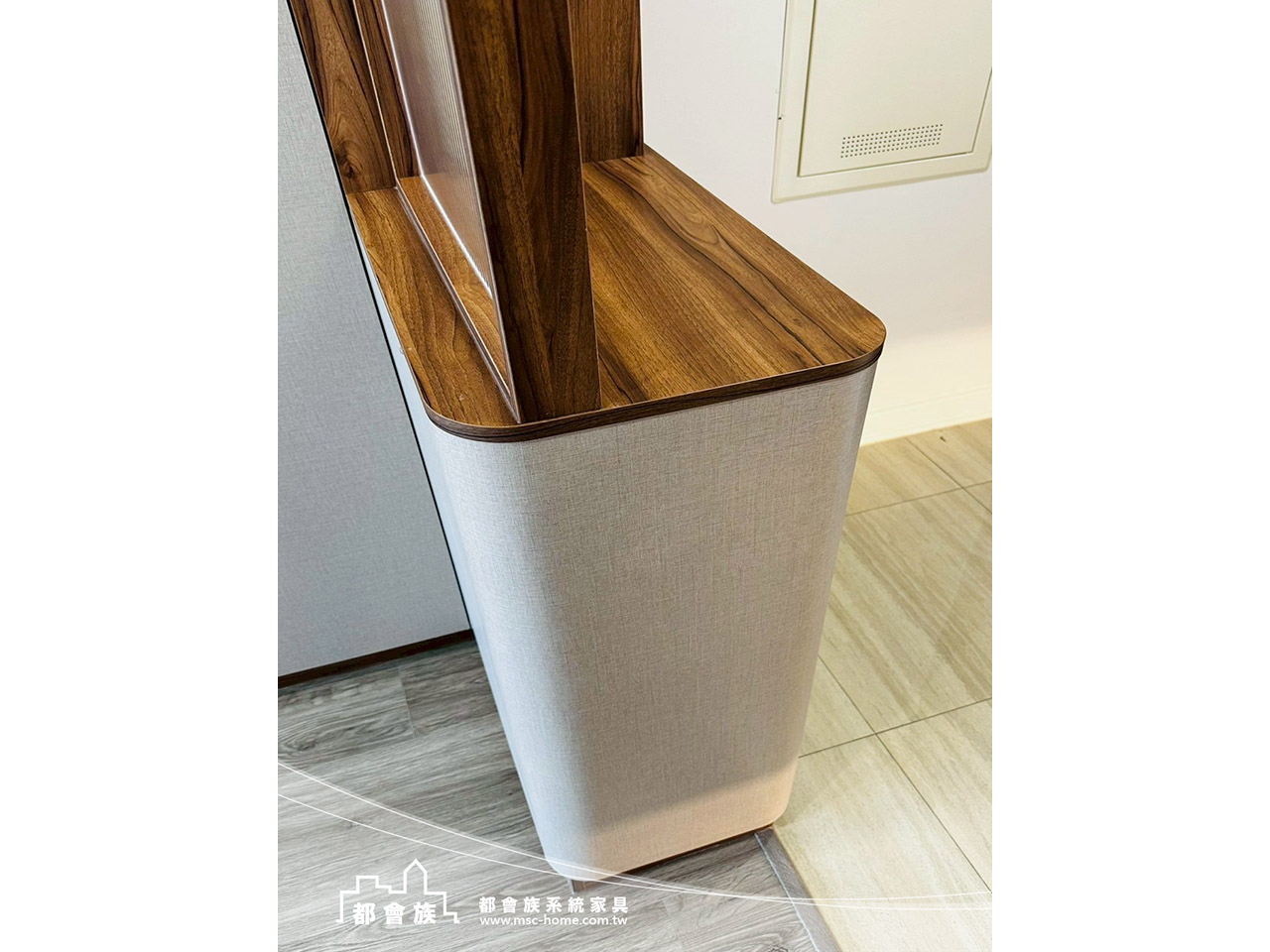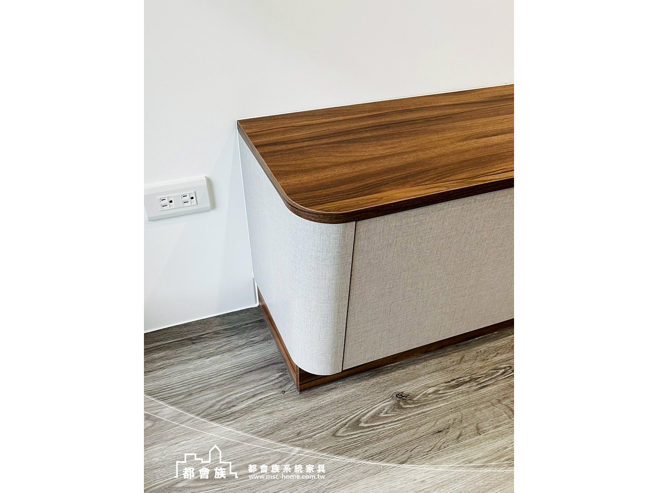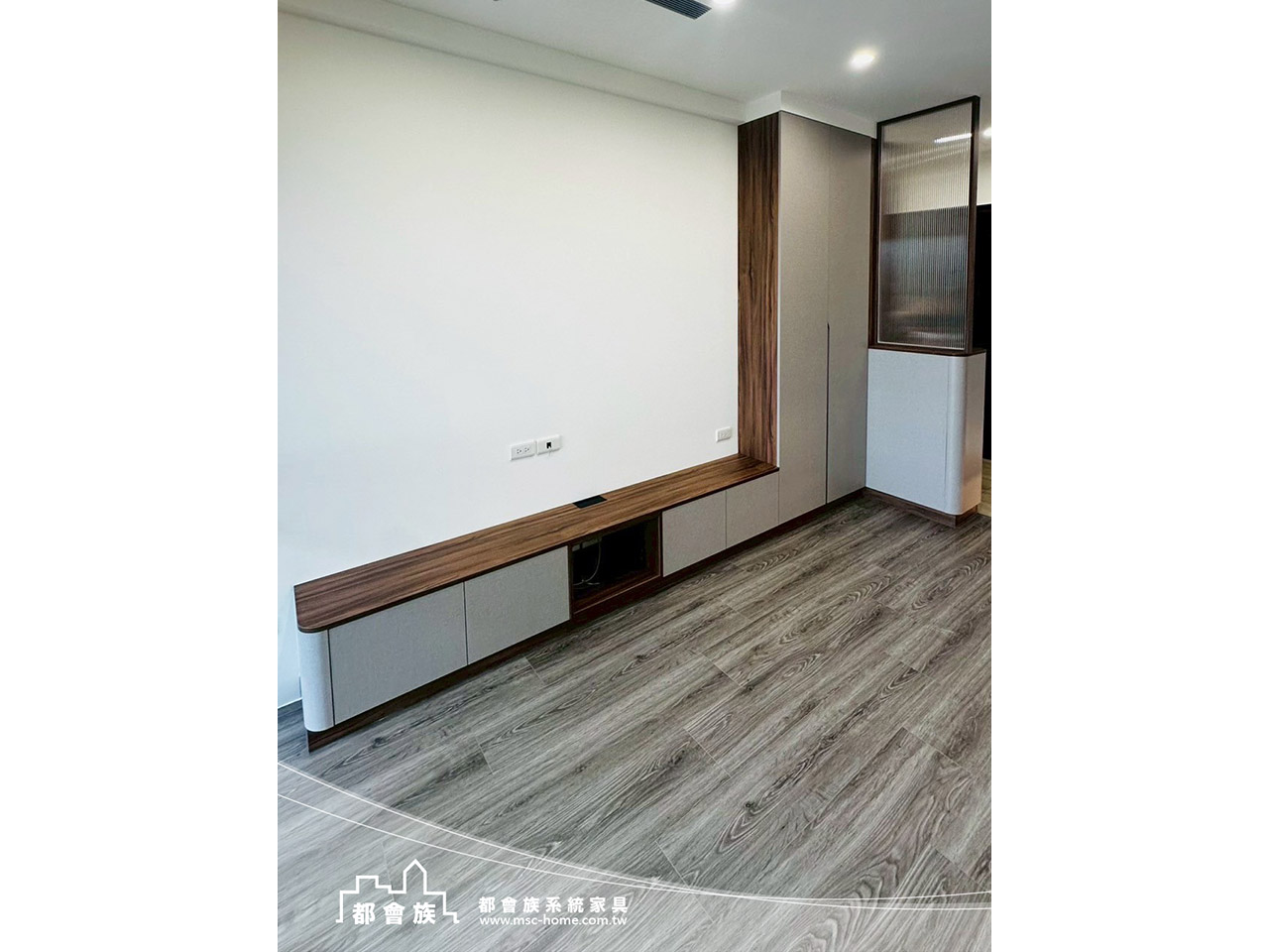 這次與立丞設計合作, 從玄關鞋櫃、電視櫃、電器櫃到廚房區與臥室, 整體風格一致且細節到位, 溫潤的木紋搭配低飽和布紋門板, 營造出沉穩又溫暖的居家氛圍, 兼顧美感與收納機能, 讓空間井然有序廚區動線流暢, 視覺簡潔俐落, 玄關利用圓弧修邊板去修飾, 並搭配長虹玻璃增加光線與空間的透視, 主臥室的懸空書桌減輕視覺重量, 並保留靈活的地面空間, 打造出一個舒適、實用且耐看的理想居所。
