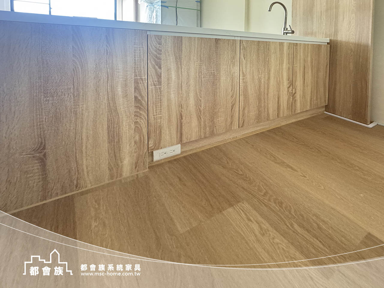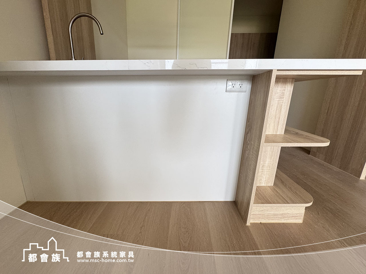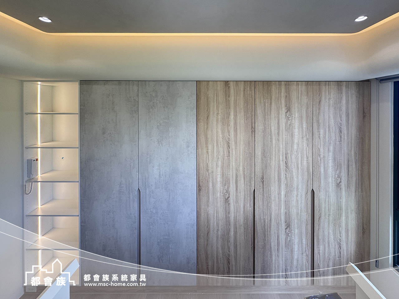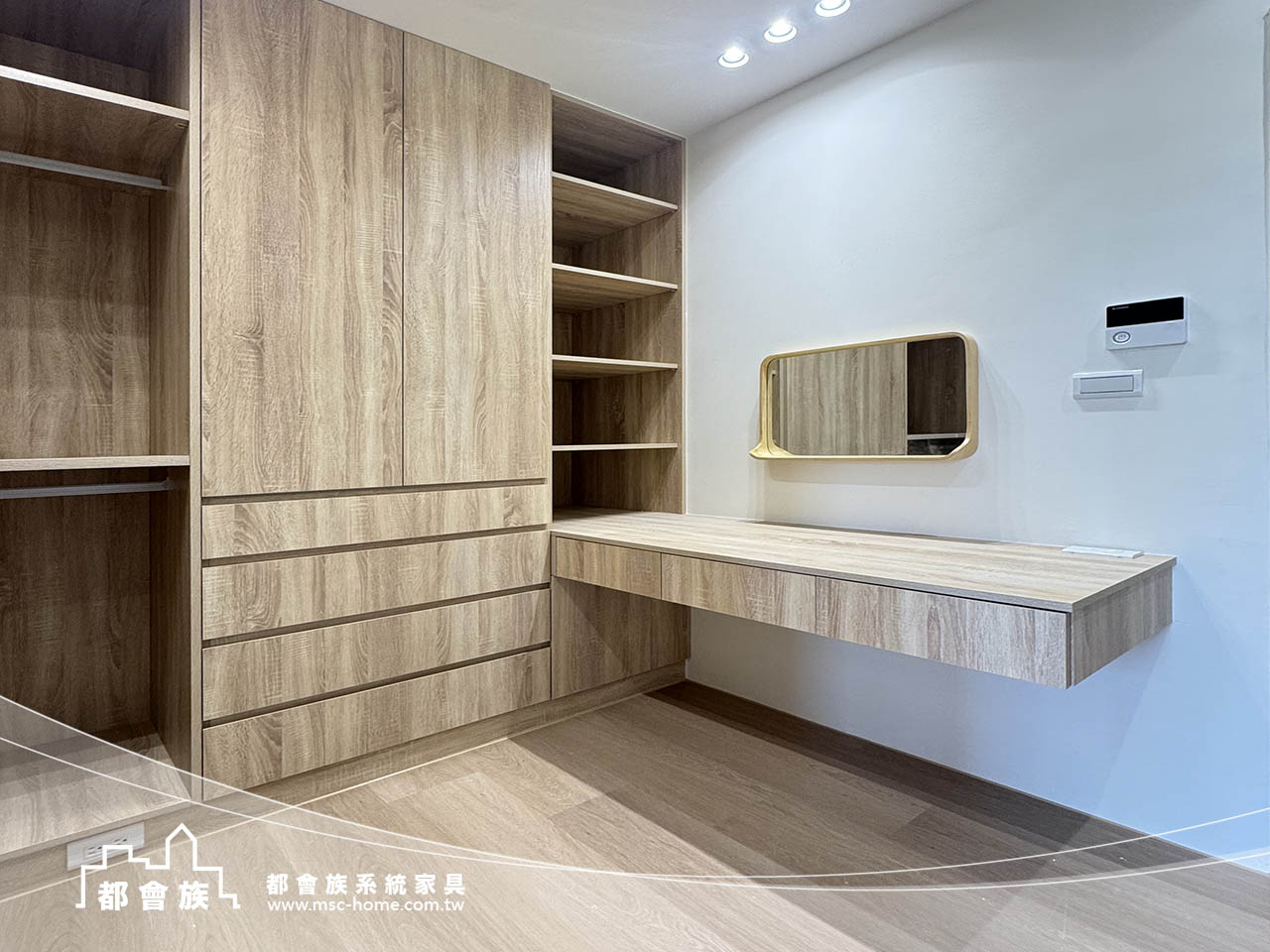 此案件是與吾他川設計合作的案件, 櫃體大致上使用木紋色系, 再搭配局部白色去點綴, 營造出溫馨的感覺。