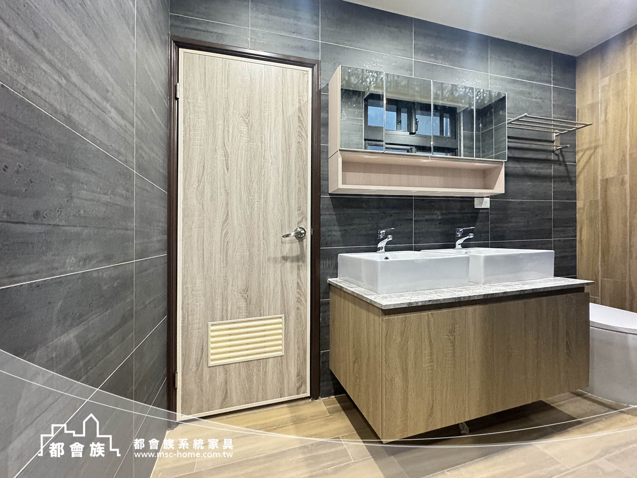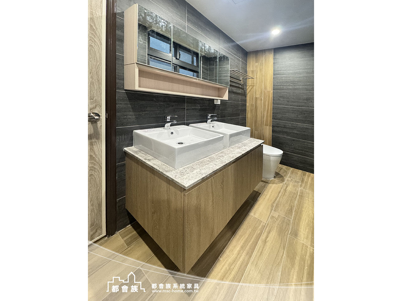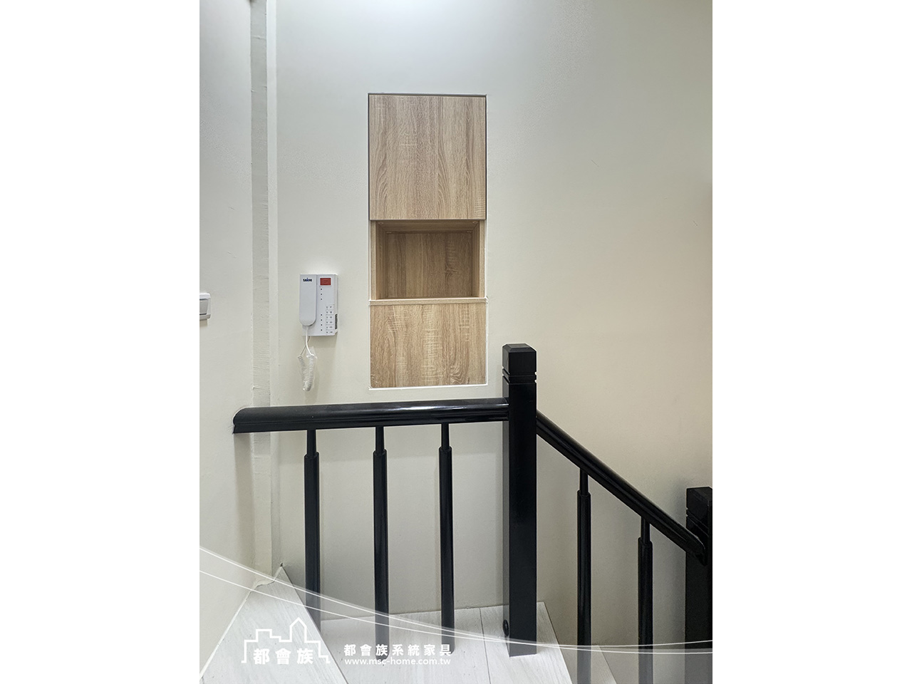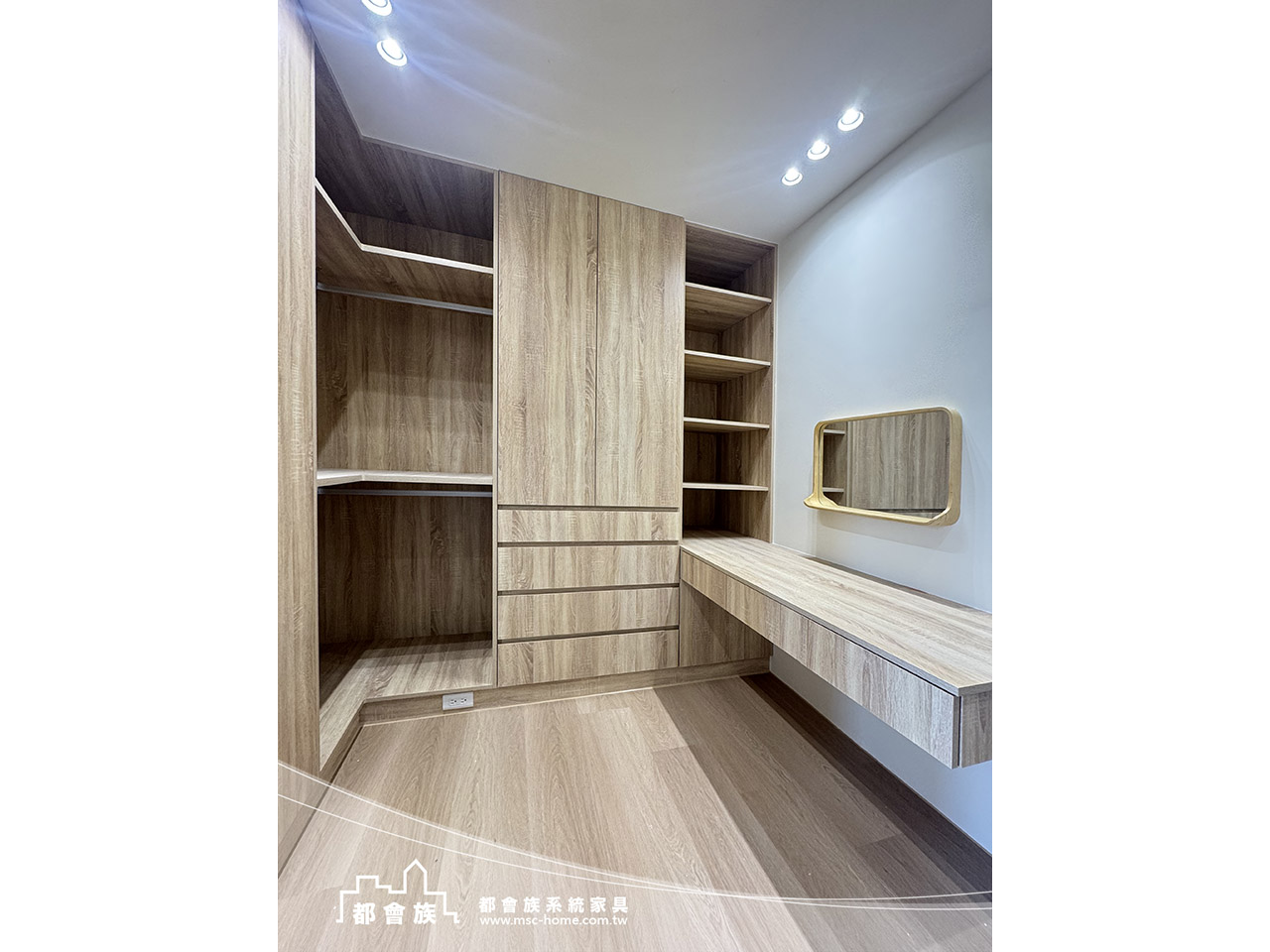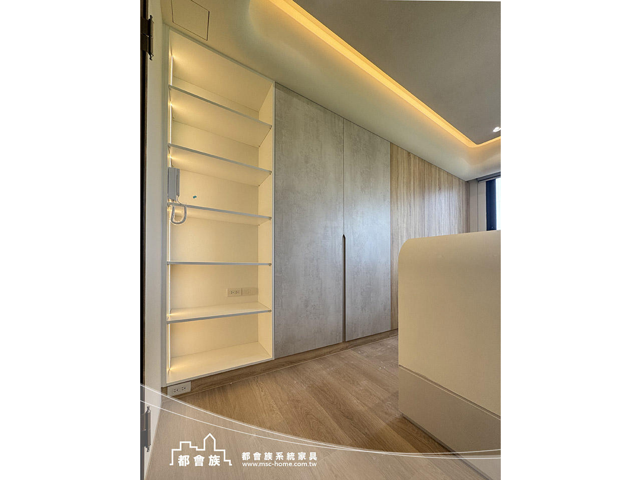 此案件是與吾他川設計合作的案件, 櫃體大致上使用木紋色系, 再搭配局部白色去點綴, 營造出溫馨的感覺。