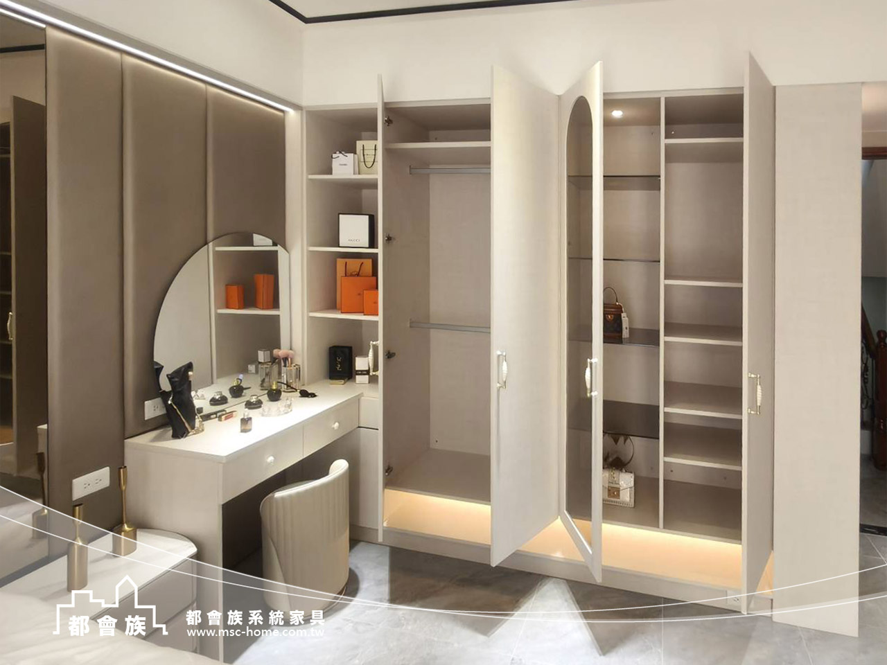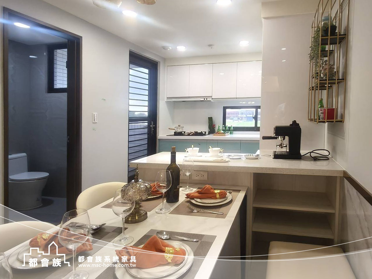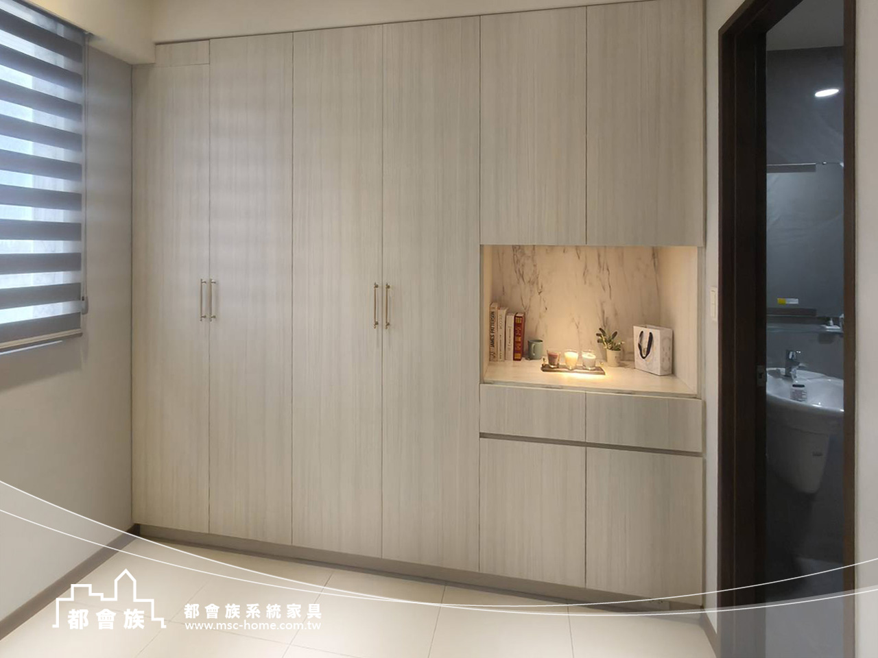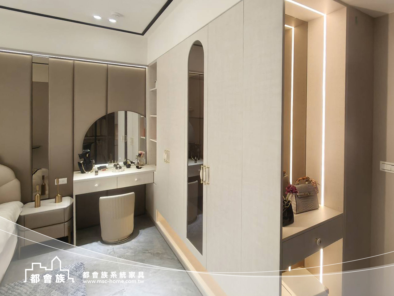 本次案件與禾原設計合作, 電視櫃電子壁爐溫暖加分, S131色搭配木作圓弧壁板質感加分, 餐櫃雙面收納空間不浪費, 與建商廚具完美搭配L型人造石檯面, 次臥室藍色調男生房, 床頭線燈加上左側書桌, 衣櫃中有個巧思圓弧玻璃門, 左側一個小展示空間, 女兒房M47色簡單明亮, 主臥室門口展示玻璃門衣櫃質感加分, 左側入口玄關空間, 加上整面懸空衣櫃, 下方燈光讓氣氛更柔和搭配M174色更顯尊榮。