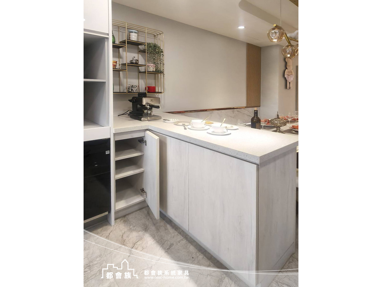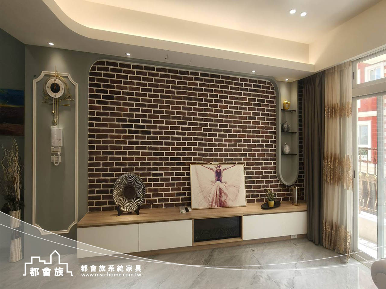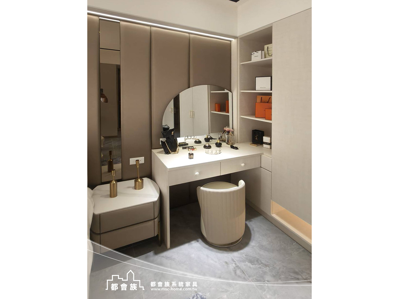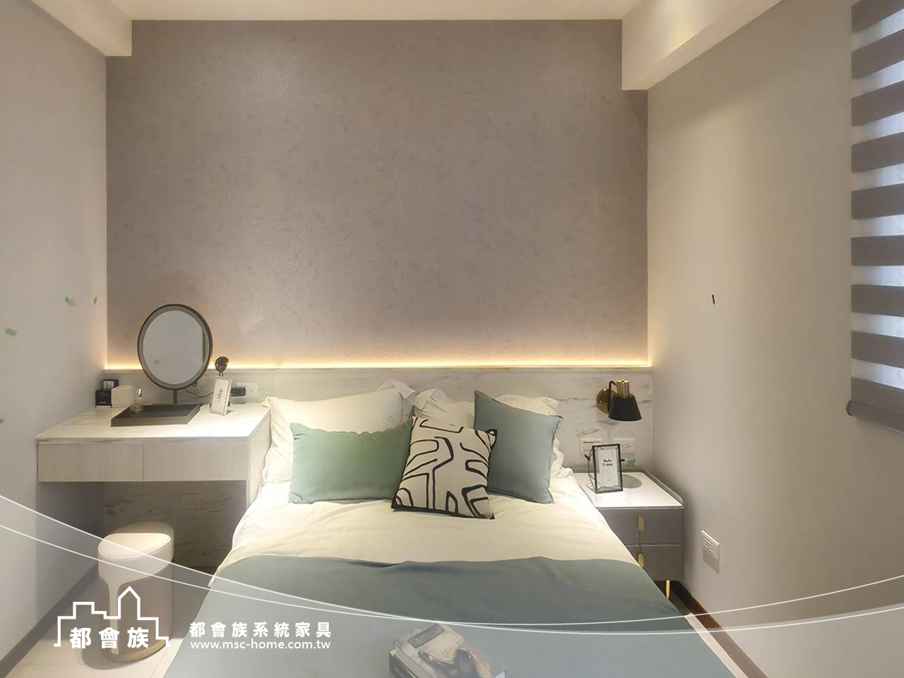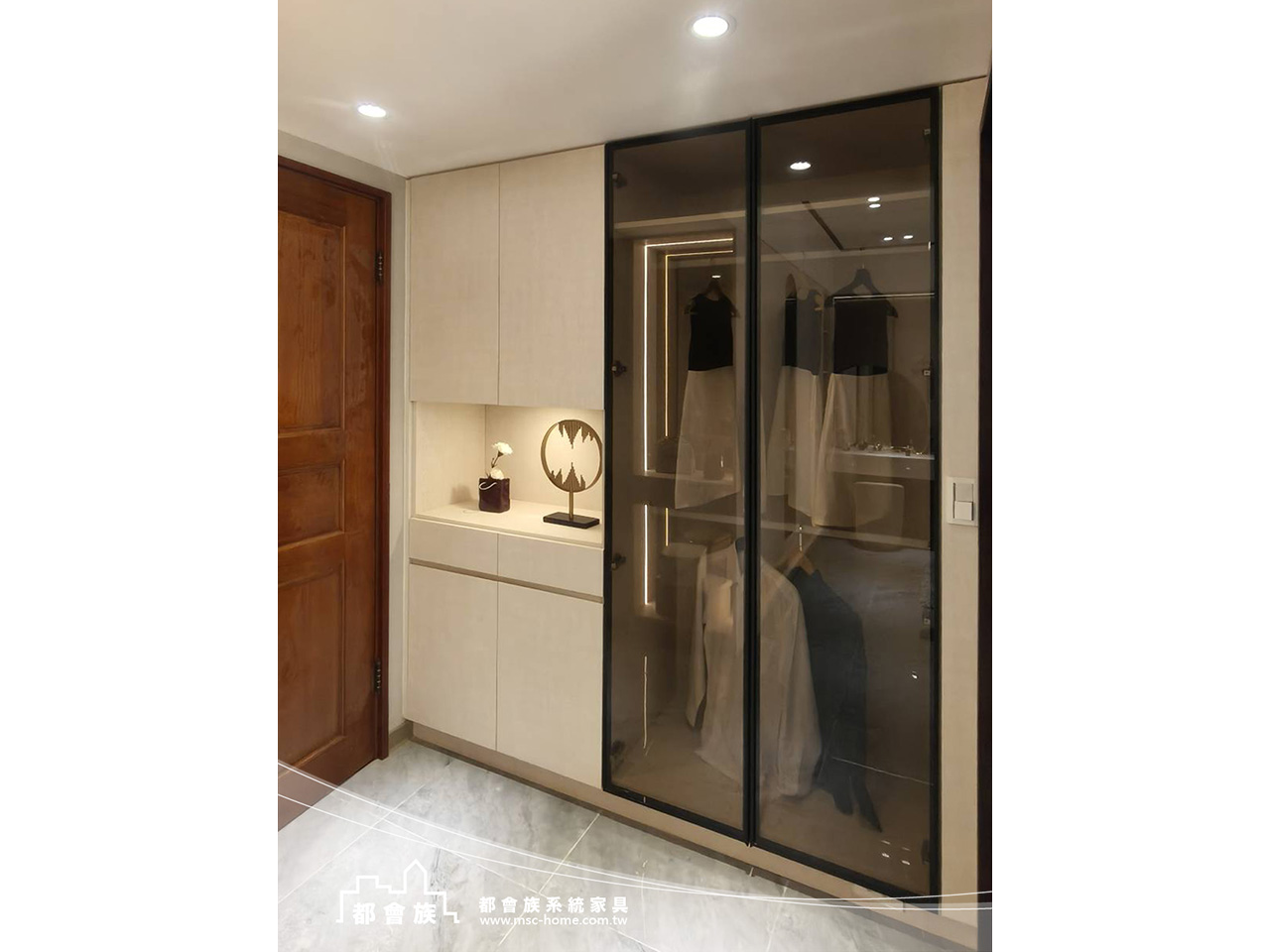 本次案件與禾原設計合作, 電視櫃電子壁爐溫暖加分, S131色搭配木作圓弧壁板質感加分, 餐櫃雙面收納空間不浪費, 與建商廚具完美搭配L型人造石檯面, 次臥室藍色調男生房, 床頭線燈加上左側書桌, 衣櫃中有個巧思圓弧玻璃門, 左側一個小展示空間, 女兒房M47色簡單明亮, 主臥室門口展示玻璃門衣櫃質感加分, 左側入口玄關空間, 加上整面懸空衣櫃, 下方燈光讓氣氛更柔和搭配M174色更顯尊榮。
