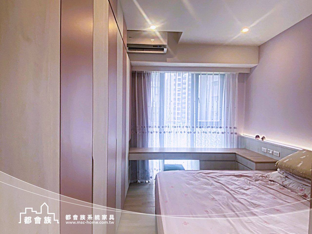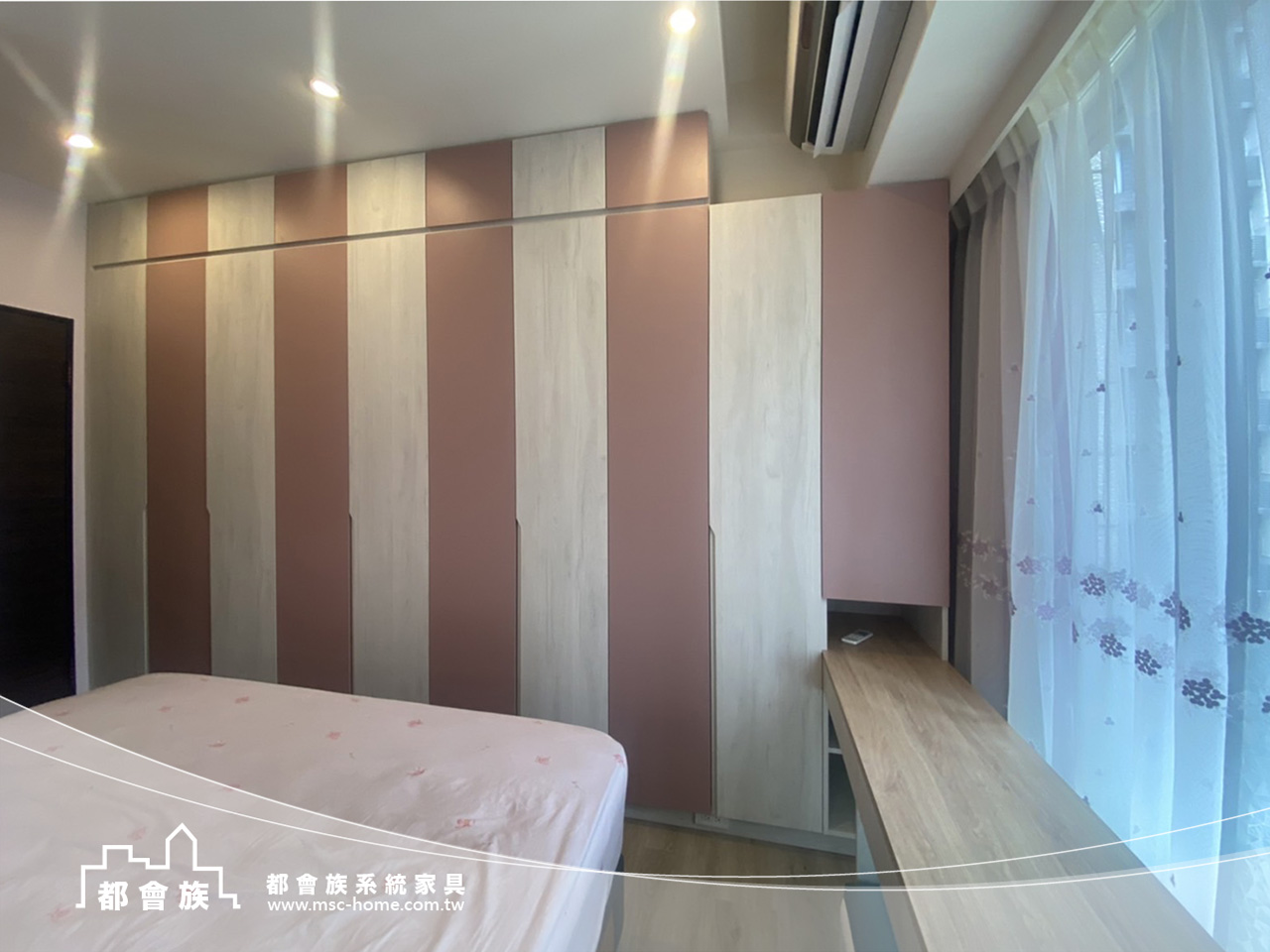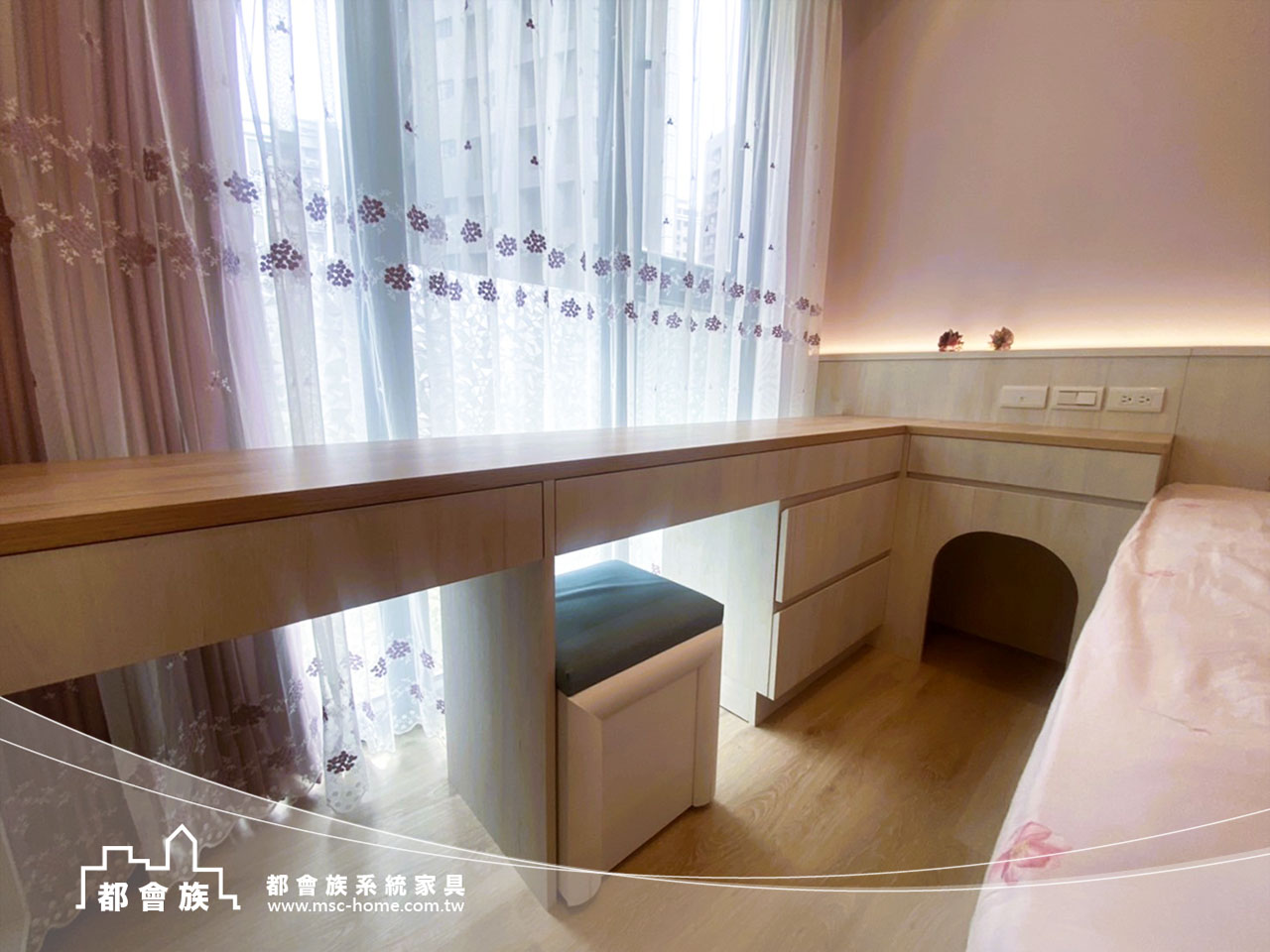 屋主特別喜歡圓角造型, 玄關利用屏風與圓弧規劃, 加上淺色調門板與木紋相互呼應, 可以讓空間看起來更有層次感, 既能滿足功能需求, 又能為整體居住空間增添一些視覺上的享受。