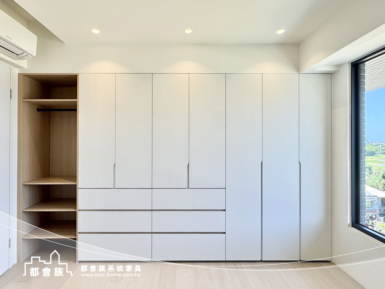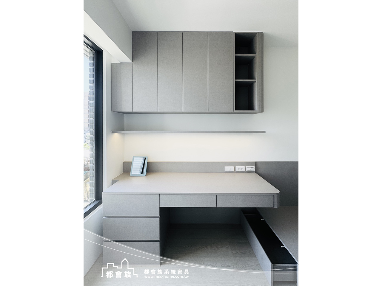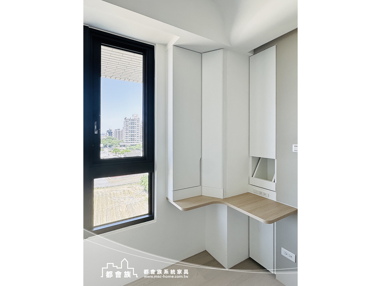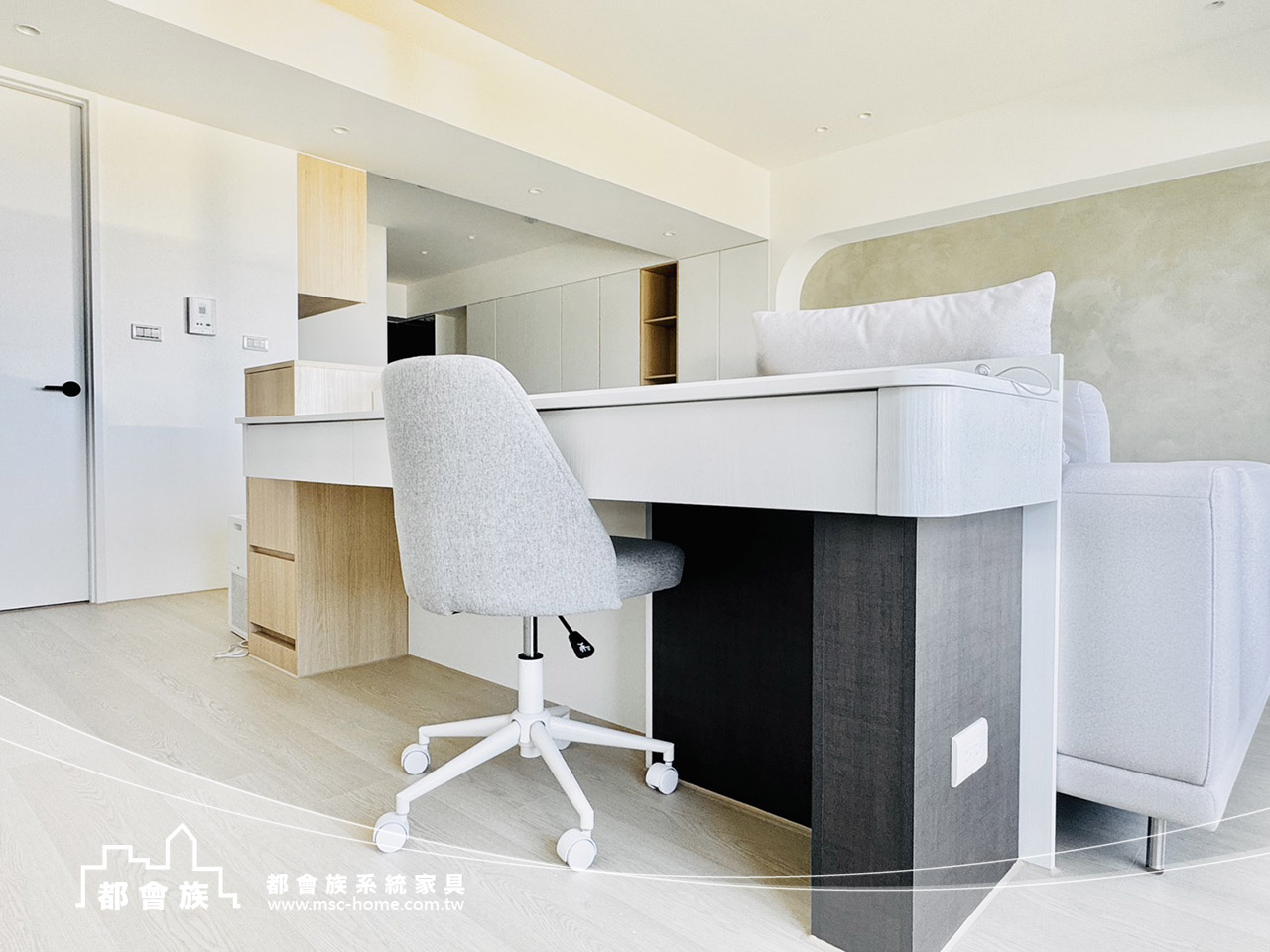 空間以自然光為主角,乾淨的結構 與柔和的木質語彙相互呼應, 展現出一種輕盈而舒緩的生活節奏。 在簡潔的線條之間,留白成為最奢侈的設計語言, 每一道光、每一處木紋,都訴說著生活的純粹與真實。 整體設計以功能為基礎,但不失溫度。 收納櫃體隱入牆面,書桌沿窗而設, 視野延伸至戶外的天空與綠意,模糊了內外的界線。 在這樣的空間中,時間彷彿變慢,思緒更自由。