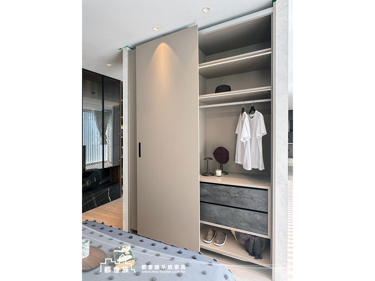 此案件是與櫻花家居合作的案件, 把「收納」變成空間的一部分 從櫃體比例、板材紋理到門片細節, 每一寸都是為了實用與美感並存而設計。 系統櫃不只是做櫃子 而是替生活打造剛剛好的秩序。 親眼感受設計與工藝的差別。