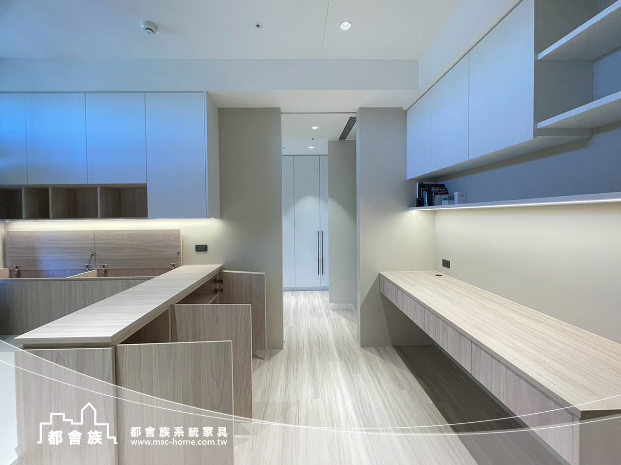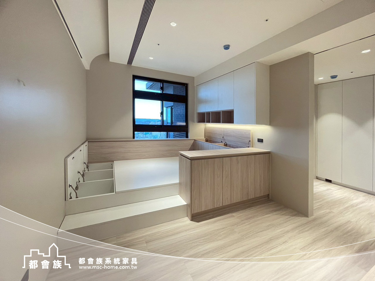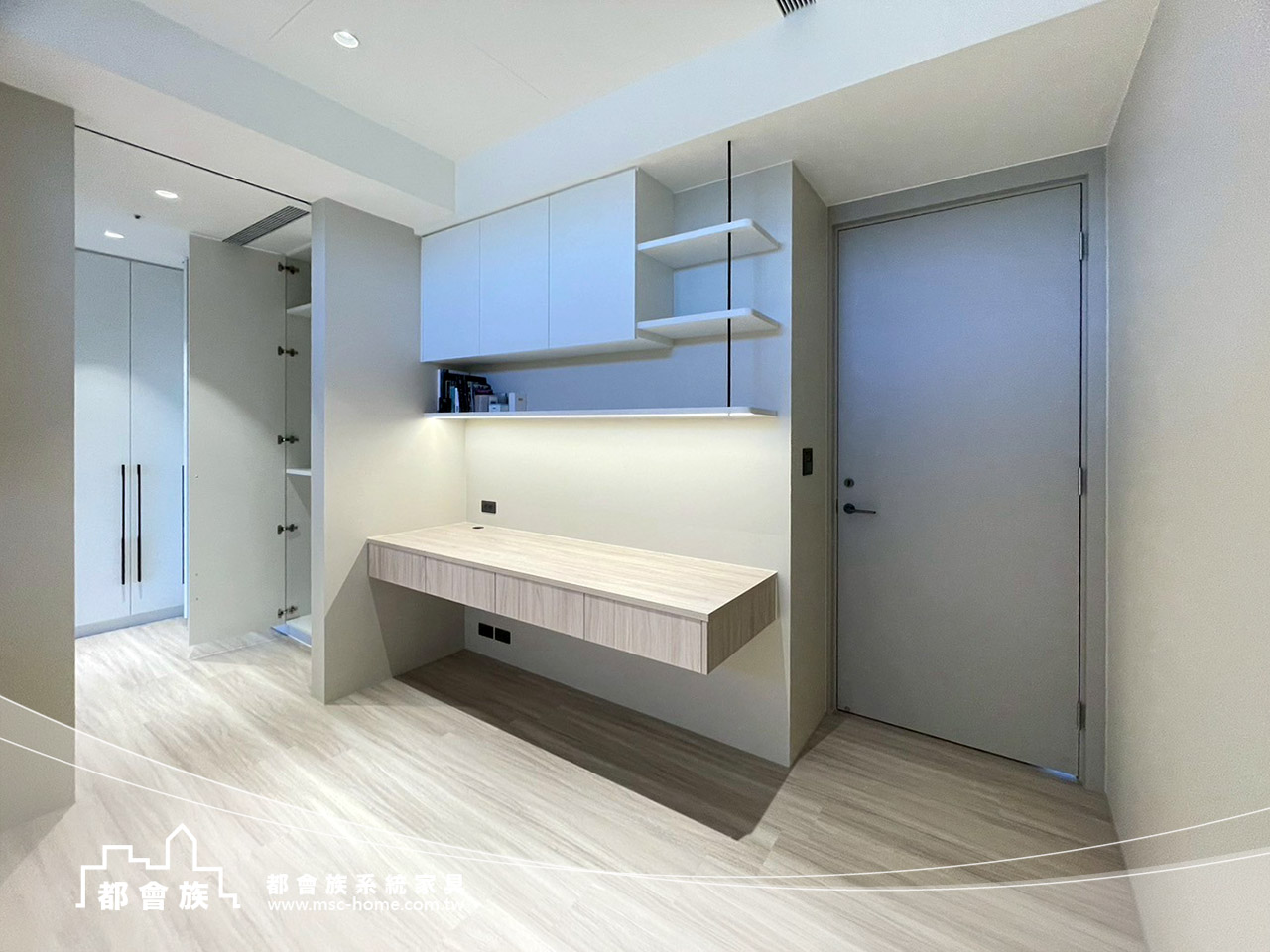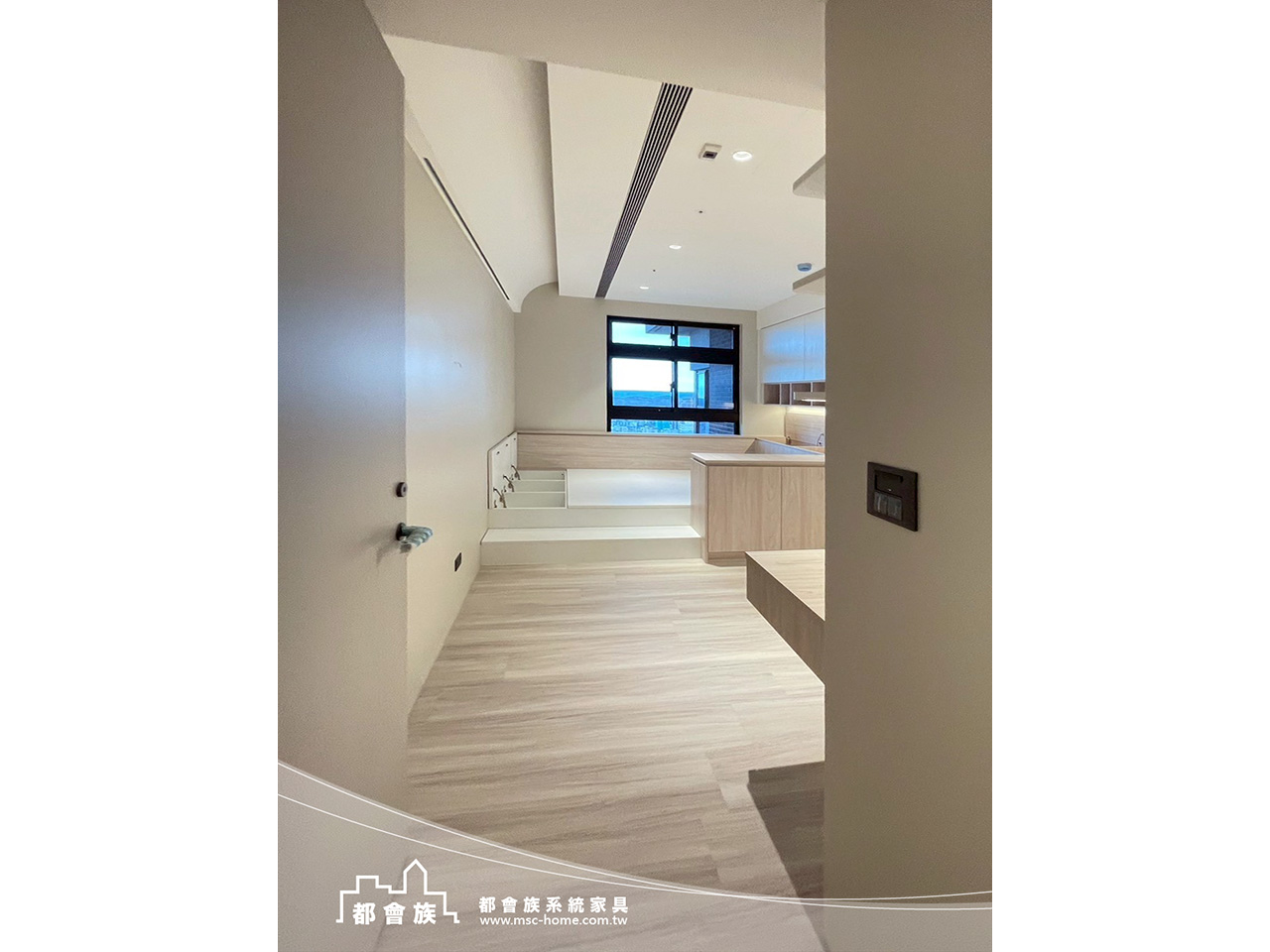 此案件為與瓦第設計合作的案件, 這是一個充滿現代極簡風, 兼具強大收納機能的多功能空間。 整體色調以溫潤的淺木紋搭配純淨白, 營造出寧靜、舒壓且充滿通透感的居家氛圍, 隱藏式的地坪收納與頂天立地大衣櫃, 將生活瑣碎溫柔收起, 只留下清爽與呼吸感, 不僅是一個房間, 更是一個能裝下生活萬物, 卻依然保持優雅的理想家。