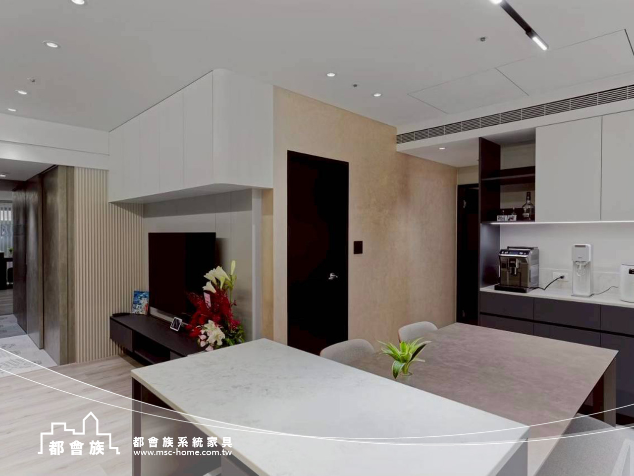本案與鑫鼎設計配合, 以現代簡約為核心, 系統櫃依照空間尺度量身規劃, 整合收納、展示與機能需求。 從客餐廳到臥室, 透過一致的色調與俐落線條, 讓櫃體自然融入空間, 放大視覺感受。 高櫃、吊櫃與隱藏式收納巧妙配置, 不僅提升實用性, 也讓生活動線更加順暢。 細膩的材質搭配與燈光設計, 為日常注入溫潤質感, 展現兼具美感與機能的理想居家。