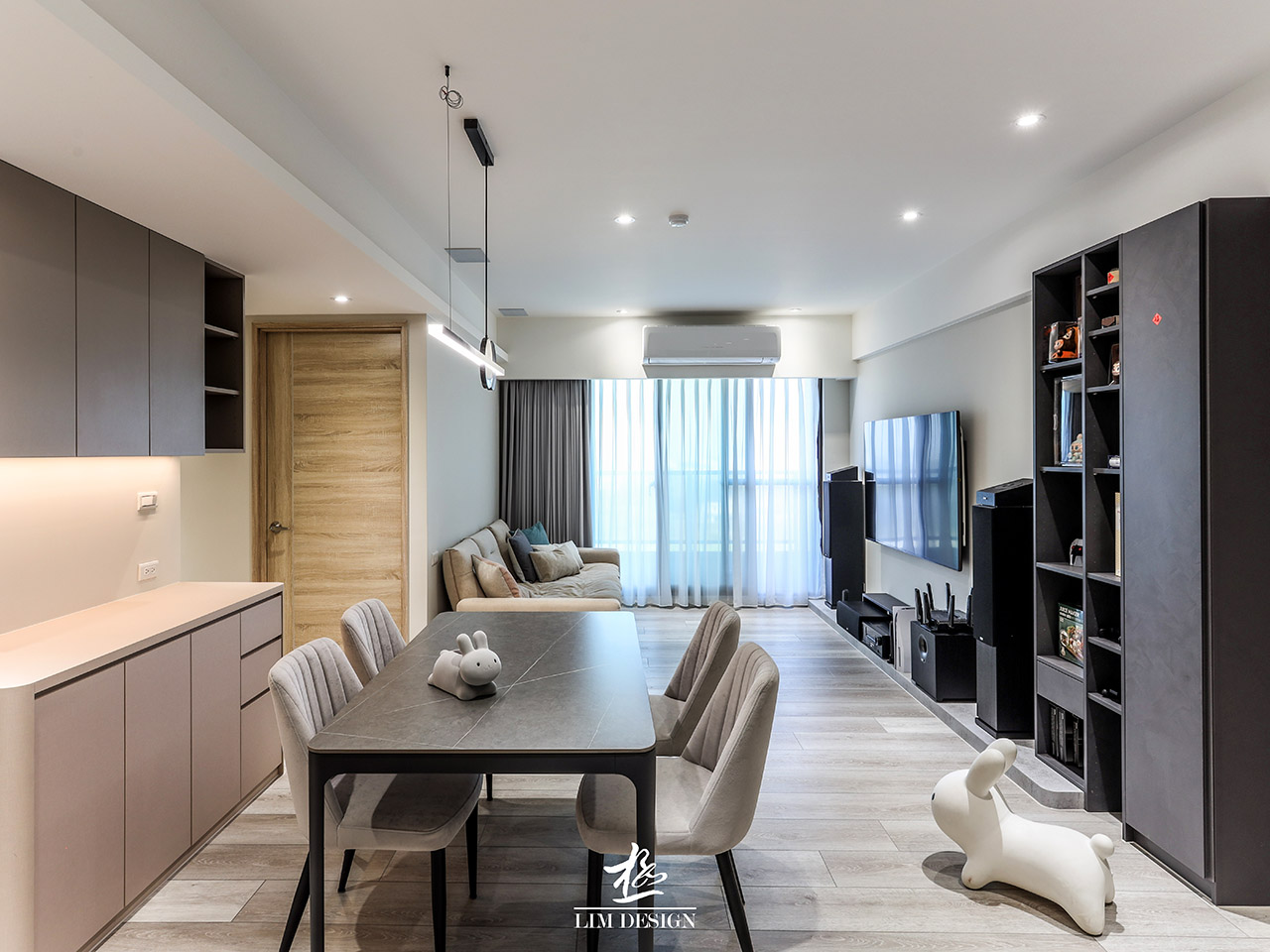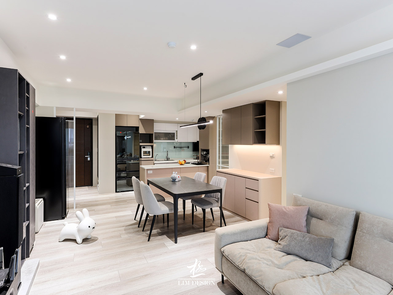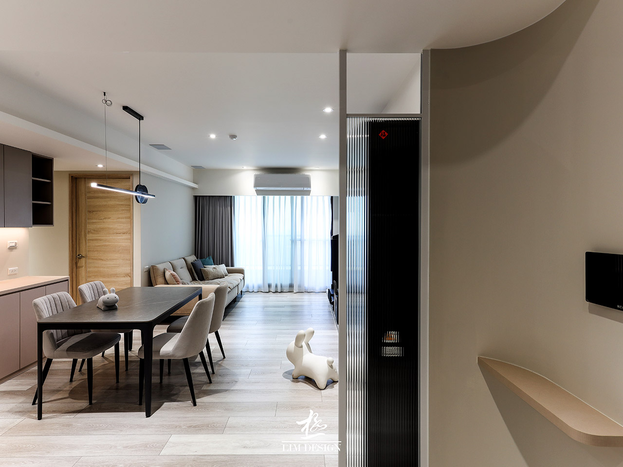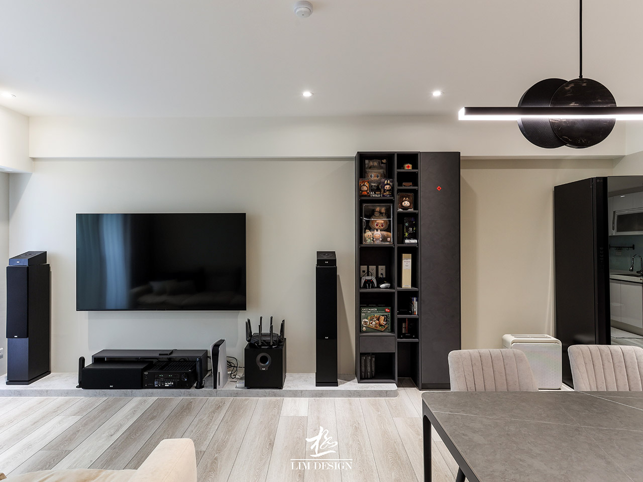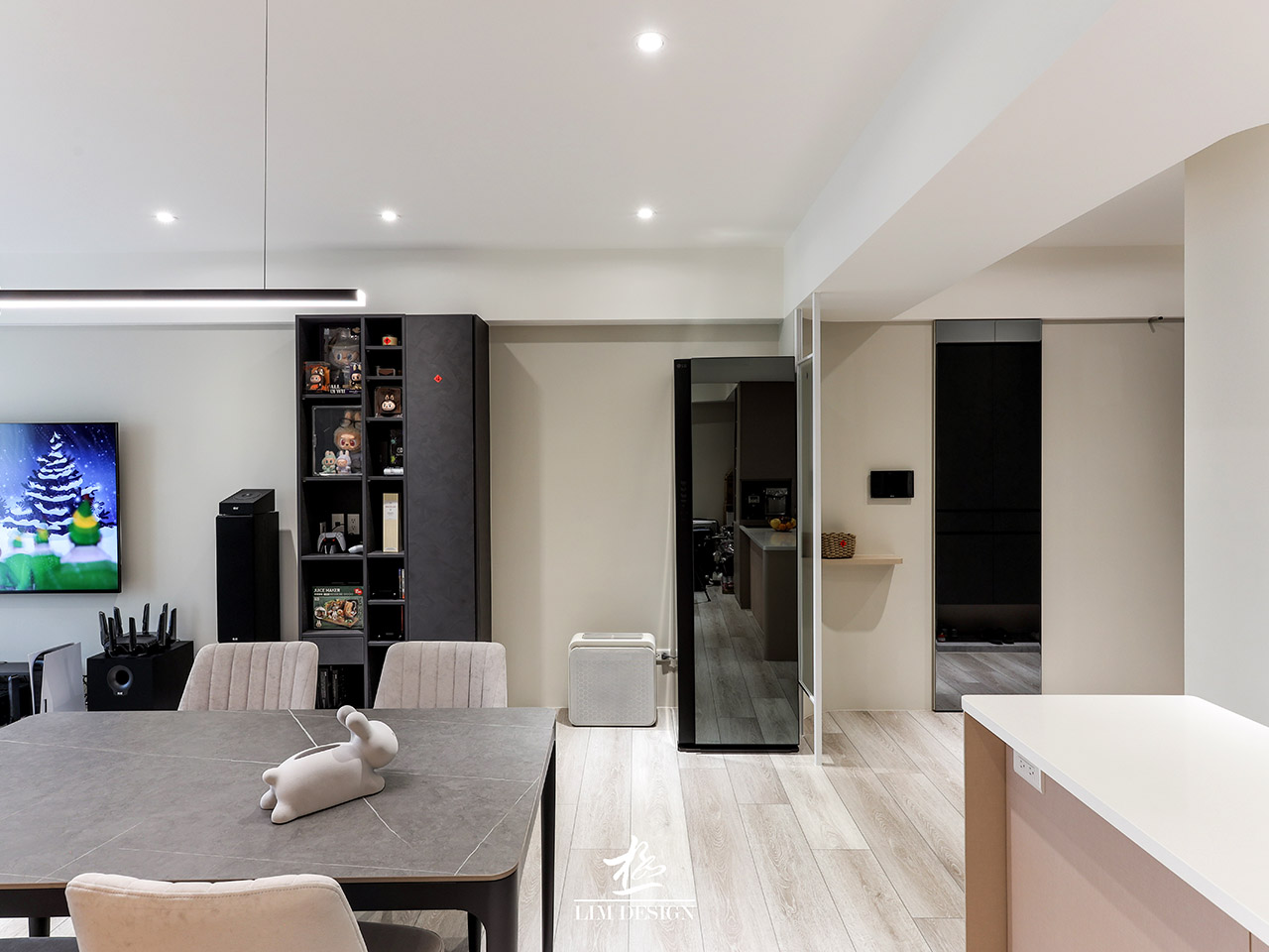 此案與極空間設計合作, 家,不只是遮風避雨的場所, 更是心靈的延伸。本次案例以「現代極簡」為基調, 透過俐落的線條與低彩度的配色, 打造出通透且富有層次的居家空間。 櫃體的垂直與水平線條非常俐落, 所有雜物都被收納於無形, 營造出一種「生活被精準打理」的精緻感與安定感, 牆面與天花板以大面積的白色與輕盈的灰色為主, 這是不退流行的「高級感」來源, 讓空間顯得乾淨且明亮。