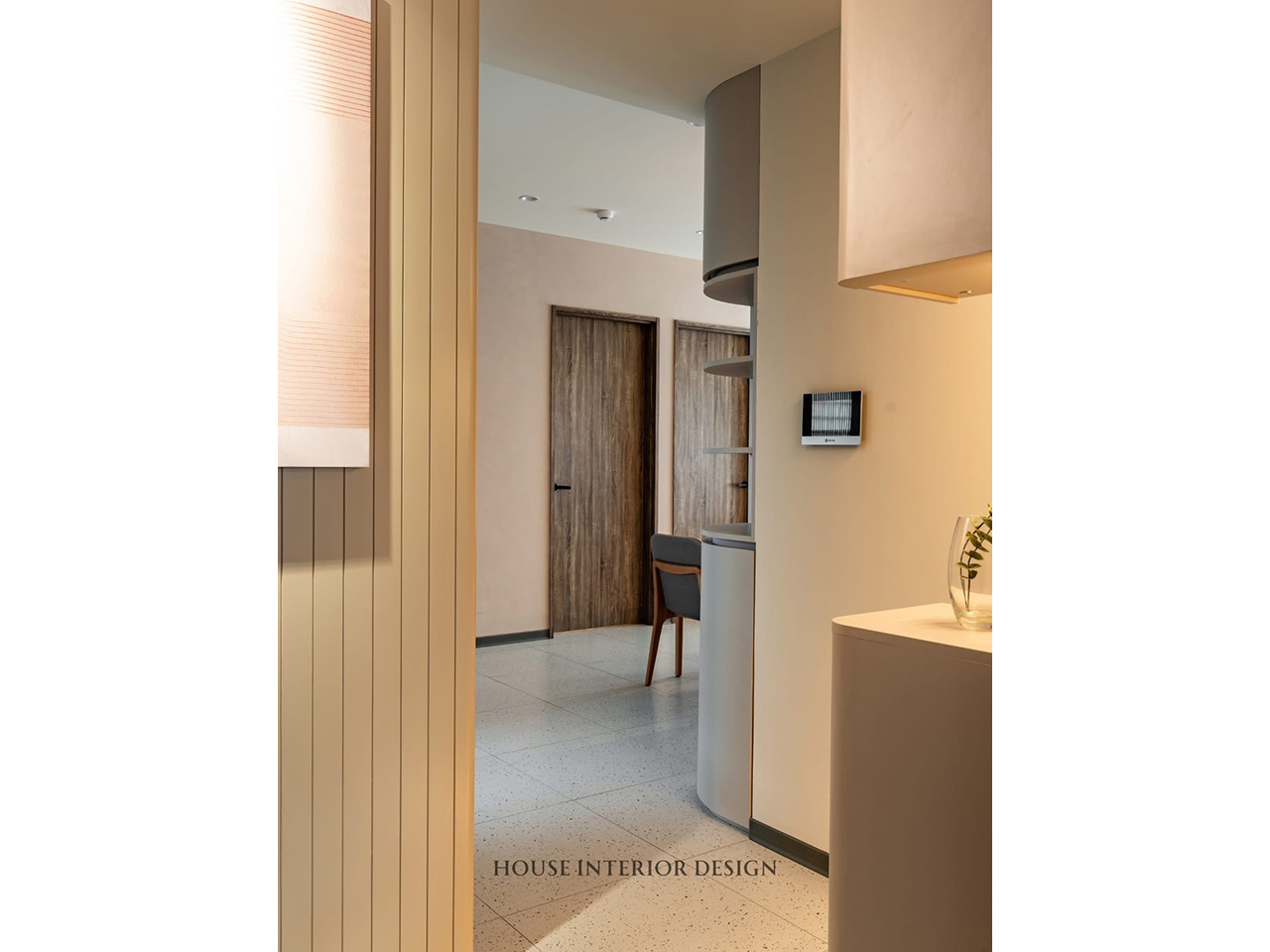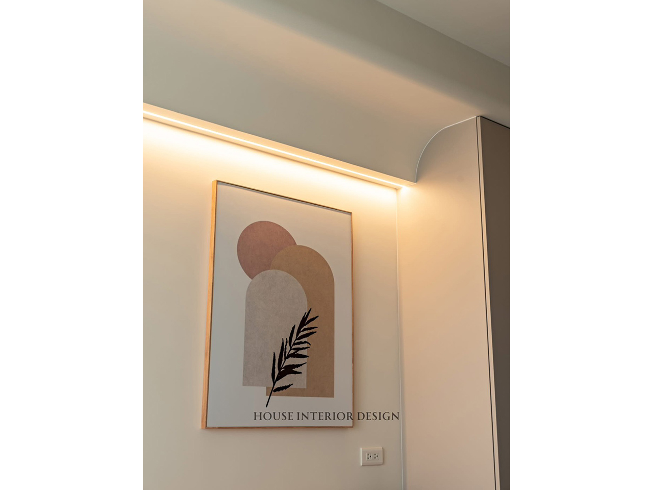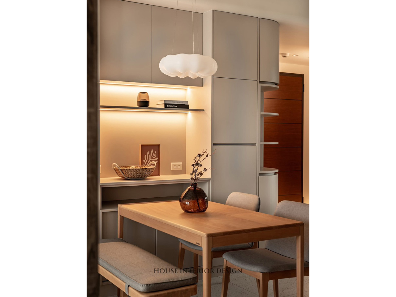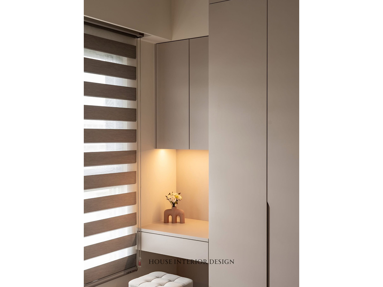此案與好室空間設計•規劃配合, 褪去色彩的干擾,回歸線條與比例本身的純粹。 米灰系櫃體、原木家具與米白牆面, 在光影下呈現出細緻又耐看的層次。 讓空間保有明亮與呼吸感, 弧形收邊的轉折、線燈的光暈, 讓簡約不流於單薄,,讓空間回歸休息與放鬆的本質, 每個細節,都替生活慢慢鋪上一層溫馨。 褪在整體的純淨米灰中,讓空間回歸休息與放鬆的本質 一種現代簡約的平衡,隨時間沉澱,久看不膩,久住不倦。